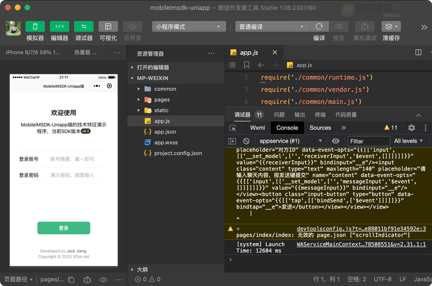 MobileIMSDK-Uniapp端 是基于Uniapp标准 WebSocket API的 MobileIMSDK配套客户端库。