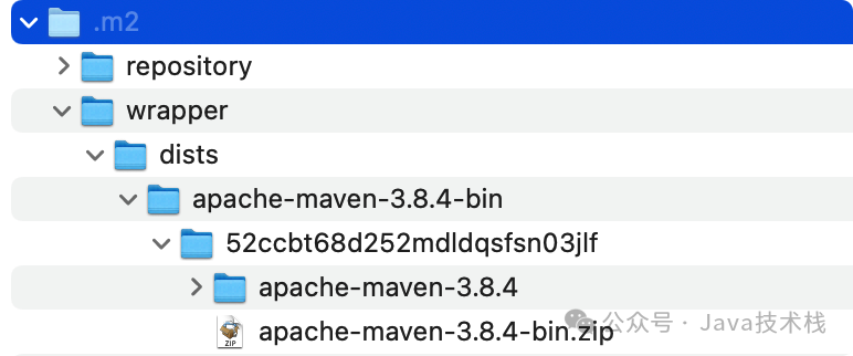 然后在 $USER_HOME/.m2/wrapper 目录中可以看到安装信息: