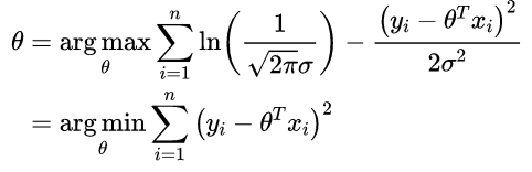 推导到这里之后问题就变得比较明了,上面的式子不就正是均方误差损失函数吗。这也解释了为什么均方误差会用作回归问题的损失函数.
