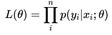 这样就估计了一个样本的结果概率,我们期待的是模型能够在全部样本上预测最准,即概率积最大。这个概率积就成为最大似然估计。下面就按照最大似然估计的方式来求解参数,首先写出似然函数如下: