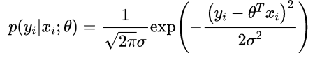 一般来说,误差满足均值为0的高斯分布,即正态分布,于是在给定条件下样本点 x 来预测回归值 y 的条件概率密度就是: