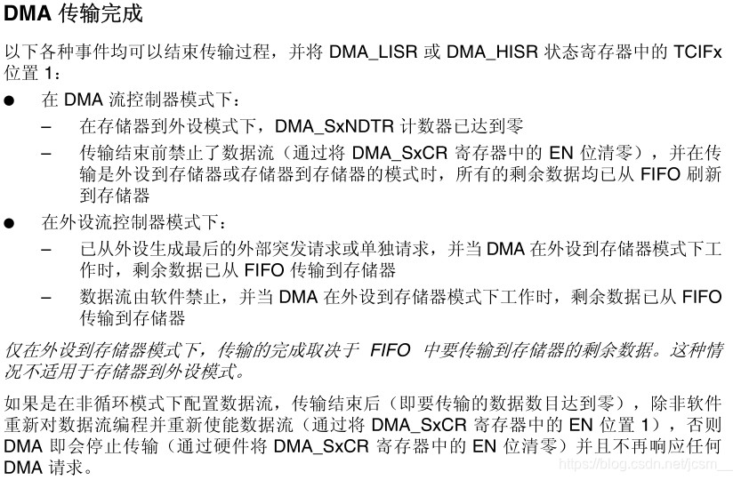 注:DMA的传输完成是广义的传输,不单单指MCU向外部传输数据,参照上图。