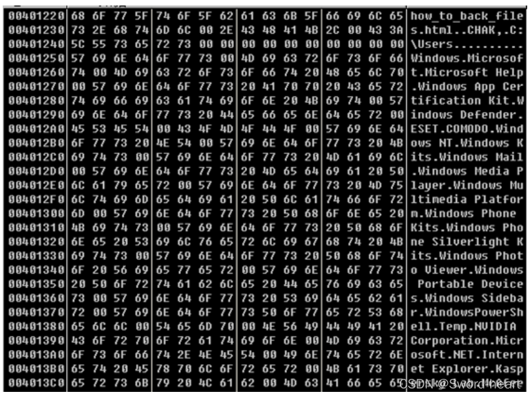 (2)通过内存解密,得到如下图所示的目录字符串列表: