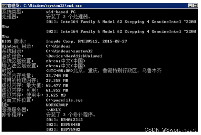 (4)systeminfo命令检查服务器之前是否打过MS17-010补丁,服务器中的补丁编号与官方编号进行对比(如win2008R2应该打的MS17-010补丁为 KB4012212、KB4012215),此场景下可以发现服务器已经打上相应的漏洞补丁,截图取证。