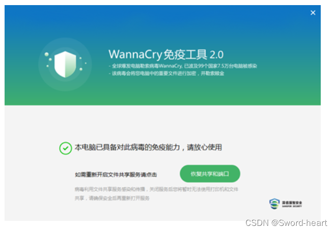(5)查看服务器是否开放135,139,445等高危端口,可以借助一些wannacry免疫工具(如深信服EDR工具等查杀的检测工具)进行检测(如果检测出有问题,不要免疫),截图取证。