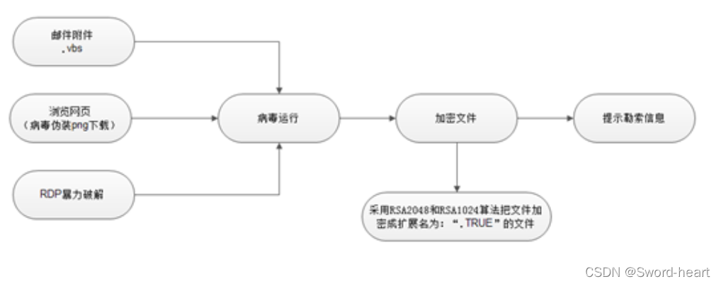 加密过程与以往的勒索软件并无太差差异,主要是差异在于,病毒感染方式不再具有内网横向传播的能力,目前发现主要通过恶意邮件附件、中毒网站挂马、RDP暴力破解方向进行传播感染。