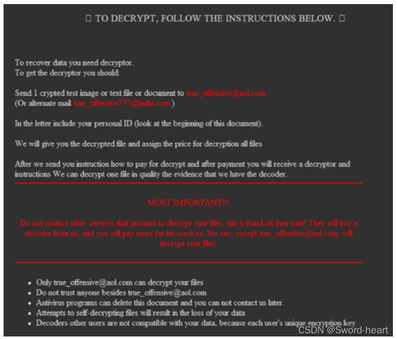 主机被加密后,不再使用支付赎金方式,要求受害者通过邮件方式,把勒索的加密图片(加密图片上有加密文件的秘钥)或文档发送到指定邮箱,并进行付费解密。