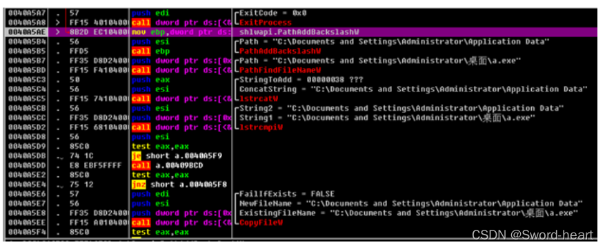 相关的反汇编代码如图所示: