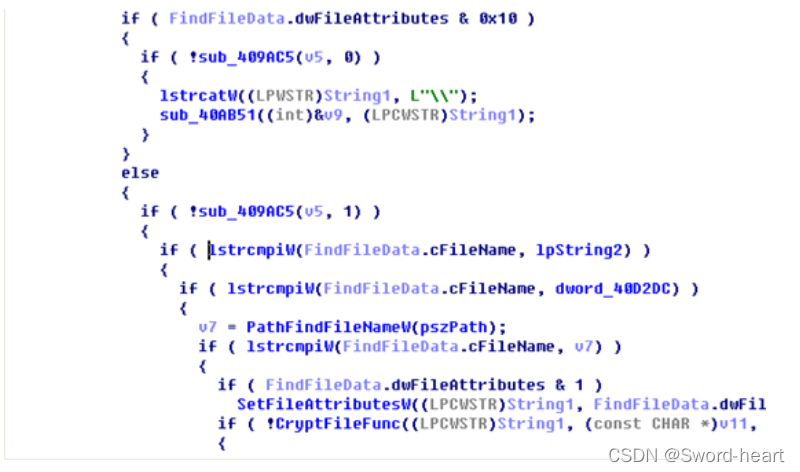 勒索软件在进行加密的时候,会判断是否是以上目录,如果是以上目录则不进行加密操作,如图所示: