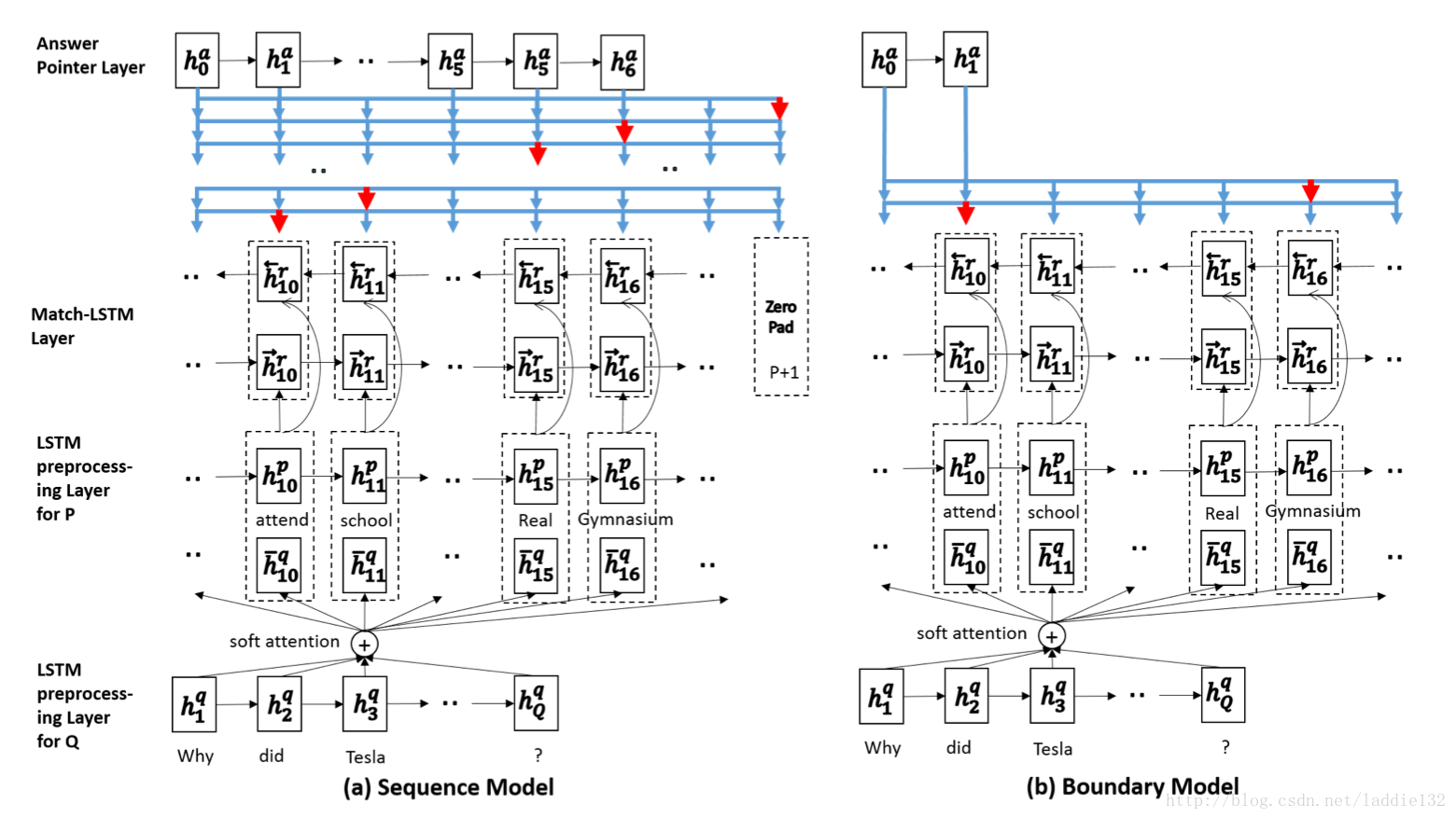- match-LSTM是作者早些时候在文本蕴含(textual entertainment)任务中提出的,可参考《Learning natural language inference with LSTM》