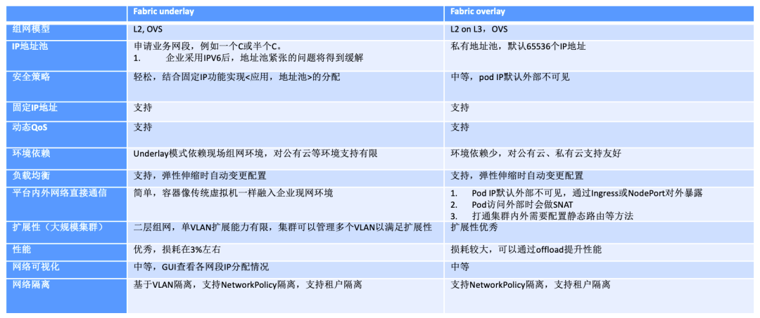 BeyondFabric同时支持underlay和overlay网络,企业可以根据需求自主选择。例如有的企业在容器云平台选型时采用了overlay网络,而对业务系统的调用关系及部署拓扑提出了很高的要求;有的企业现网IP地址空间比较少,可以选择overlay网络。overlay和underlay有各自的应用场景,不是互相替代的关系,相反很多企业在落地容器云平台时,可能同时需要两种场景。