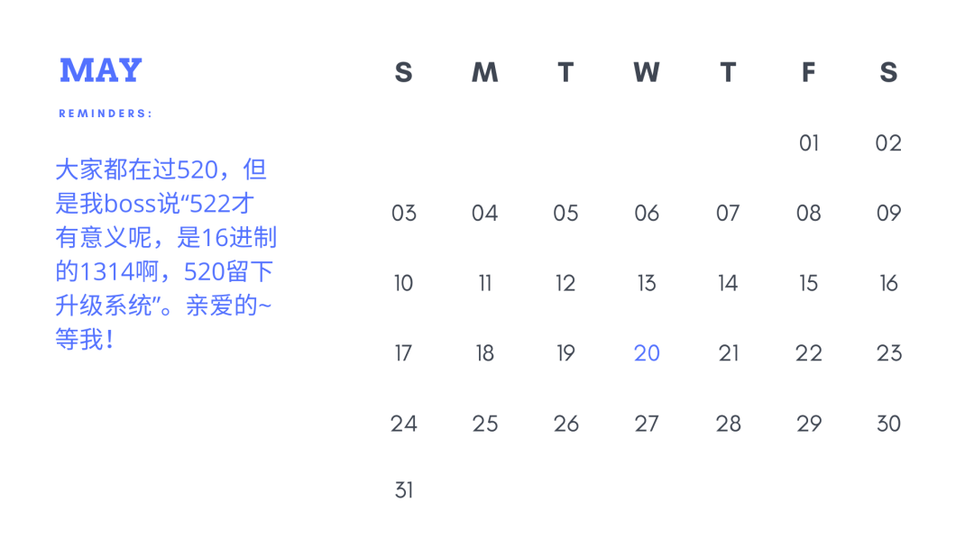 只能诚恳的祝愿各位520加班快乐,522好好陪陪宝贝吧!