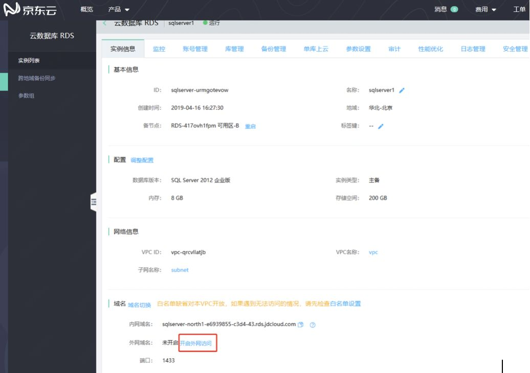 如要实现上面所说的连接,首先,需要对京东云数据库RDS、京东云数据库安全管理、京东云主机等几方面进行重新配置。