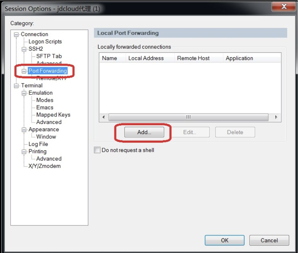 为了数据库的安全性,在生产环境中不建议开启外网访问功能。 如果用户临时需要在本地通过客户端访问数据库实例,可以借助SSH2的端口转发功能实现从本地直接连接京东云数据库RDS SQL Server,具体步骤如下:(以SecureCRT为例)