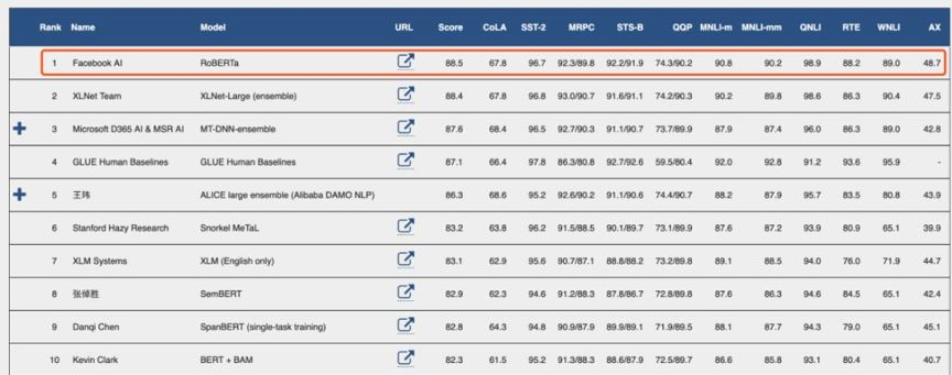 BERT王者归来!Facebook RoBERTa新模型,制霸三大排行榜