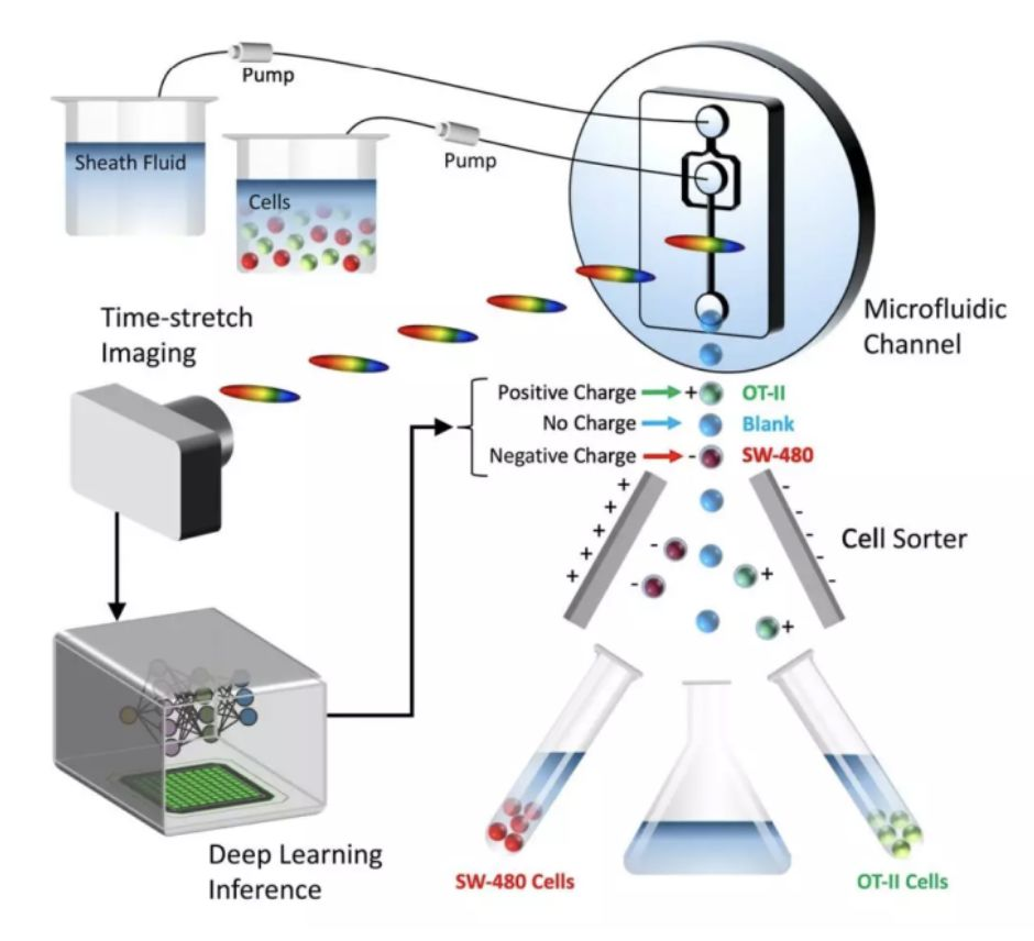 基于之前的工作,Nature的一篇论文提出采用深度学习来解决这一问题,在流式细胞仪的组成——激光信号上直接进行处理,省略了其他技术中费时的操作。该仪器可以在几毫秒之内检测出癌细胞,比之前的方法快数百倍。用这样的速度,可以在细胞检测后立刻将癌细胞从血液中分离出去,预防癌症转移。