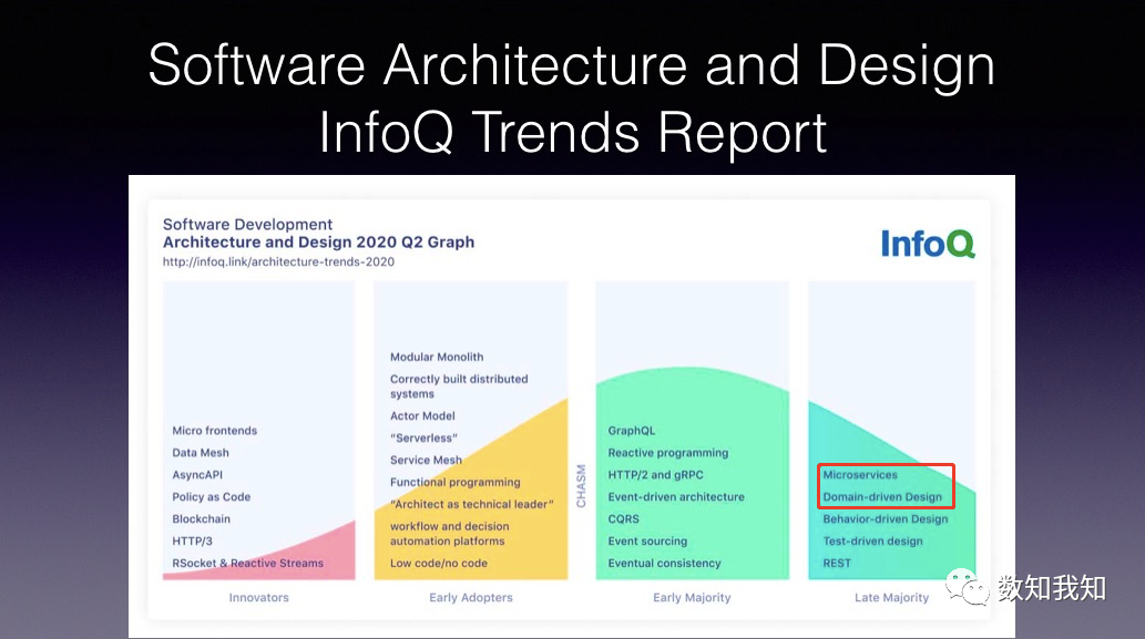 今年4月,InfoQ 发布了软件架构与设计的趋势报告。在报告中可以看出,微服务、领域驱动设计等已成为目前软件开发行业的主流趋势,笔者也了解到,DDD 已成为大部分企业微服务落地、中台建设的指导思想。