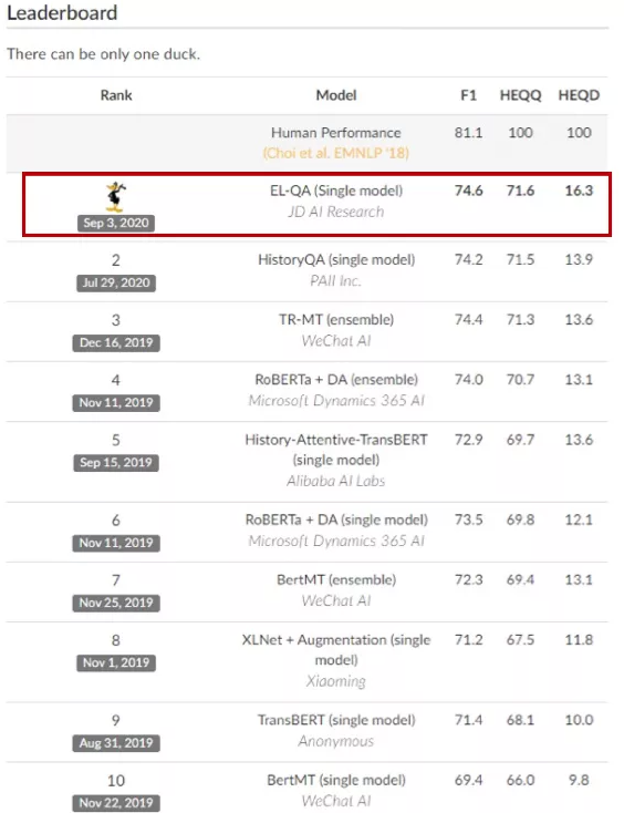 京东AI研究院获QuAC机器阅读理解竞赛冠军