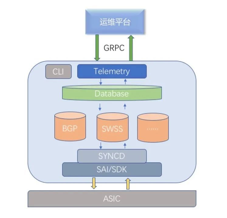 京东自研交换机通过GRPC接口,接受yang模型对应的json格式的配置,并使其生效,提高了网络变更的效率,并最大程度保证正确性。