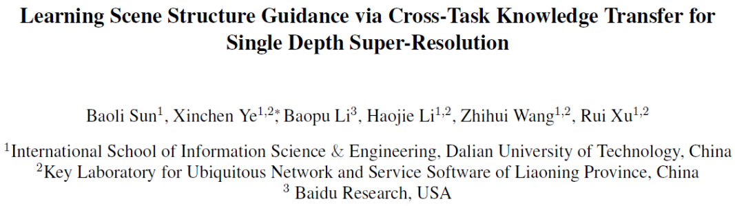 CVPR 2021丨基于跨任务场景结构知识迁移的单张深度图像超分辨率方法