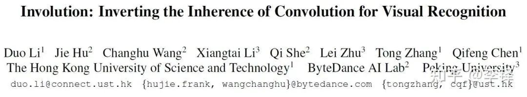 普通convolution的kernel享有空间不变性和通道特异性两大基本特性;而involution则恰恰相反,具有通道不变性和空间特异性。本文提出了一种新的神经网络算子称为involution,它比convolution更轻量更高效,形式上比self-attention更加简洁,可以用在各种视觉任务的模型上取得精度和效率的双重提升。通过involution的结构设计,我们能够以统一的视角来理解经典的卷积操作和近来流行的自注意力操作。