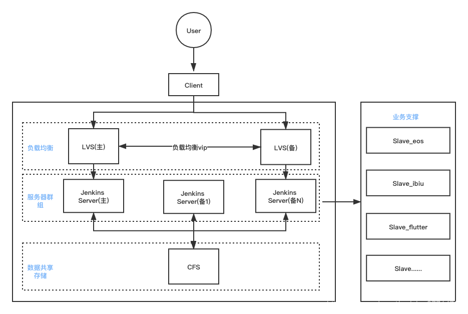 LSV(主)调度机提供数据源(即:CFS)供集群中所有Jenkins Server使用;