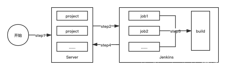 从上图中可以看到 Jenkins Master 和 Jenkins Slave 以 Pod 形式运行在 K8s 集群的 Node 上。Master 运行在指定节点, 当Server触发构建请求时,会触发Jenkins Master API ,Jenkins k8s plugin 会根据 Job 配置的 Label 动态创建一个运行在 Pod 中的 Jenkins Slave 并注册到 Master 上,当 Job 结束后,这个 Slave 会被注销并且这个 Pod 也会自动删除,恢复到最初状态,这样集群资源得到充分的利用。