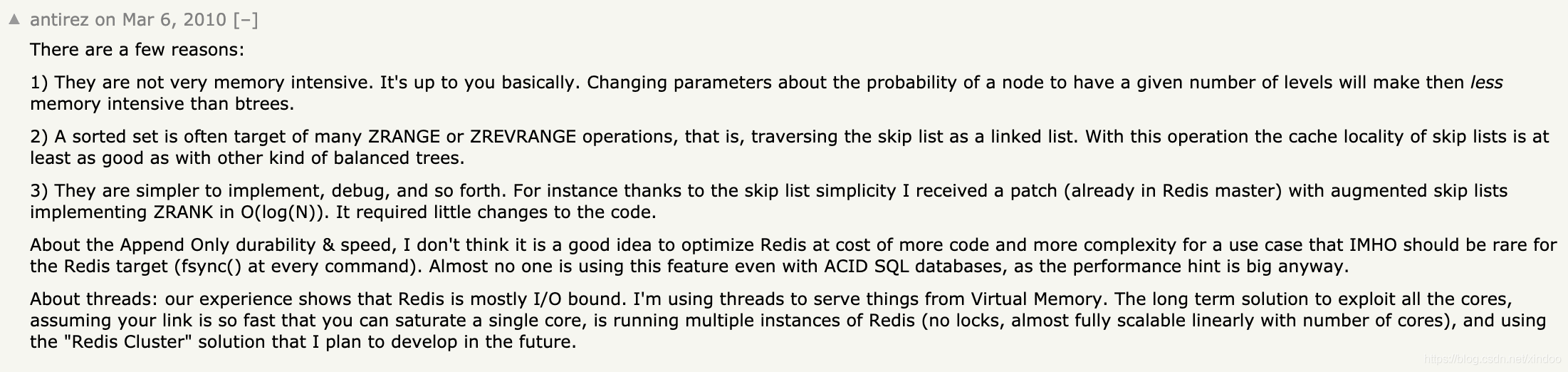 sorted set面对大量的zrange和zreverange操作,作为单链表遍历的实现性能不亚于其它的平衡树。