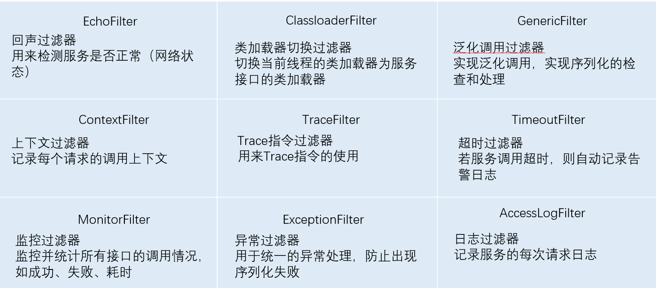 三、Dubbo中各Filter责任介绍