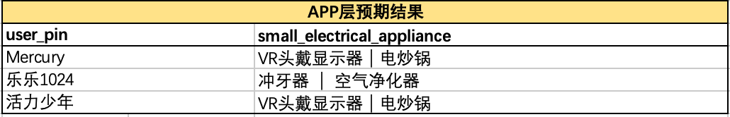 • 而APP层年度账单汇总表中的小家电集合品类如下,结果错误,不符合预期结果。