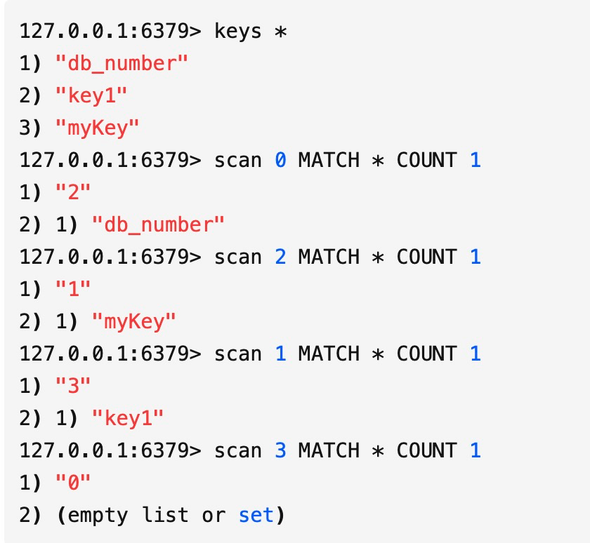 redis在2.8版本提供了scan命令,相较于keys命令的优势: