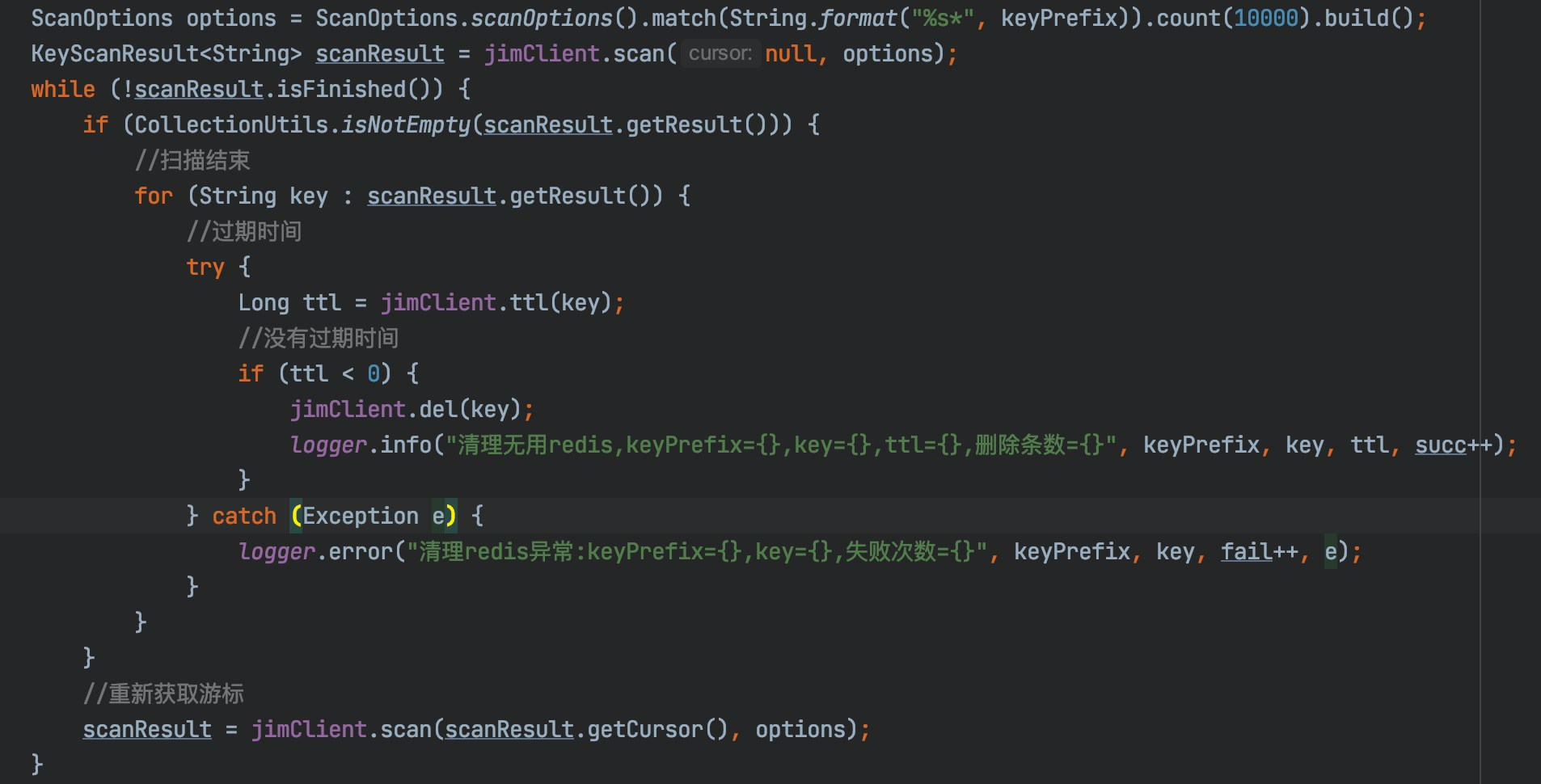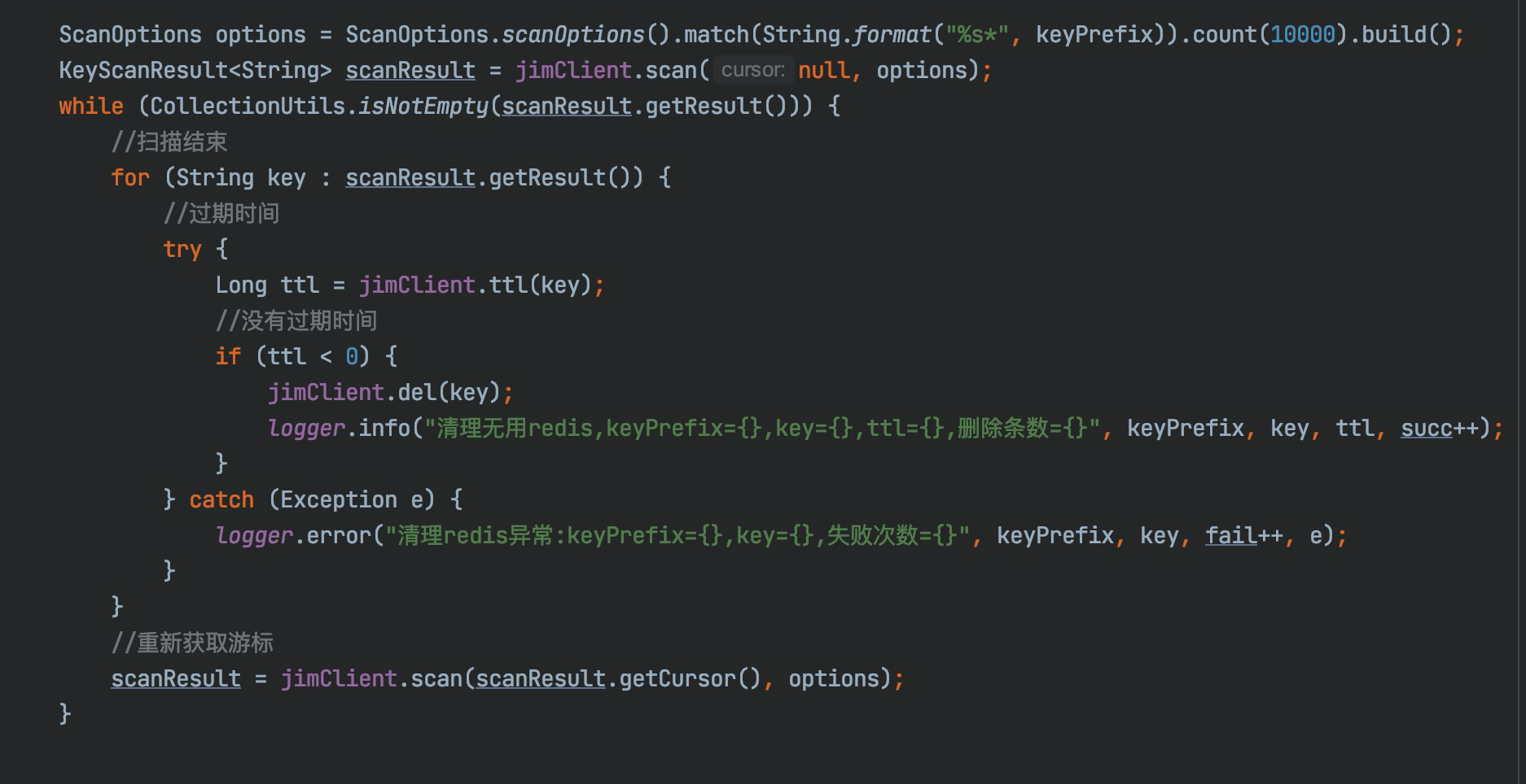 看来我们只需要设置好匹配的key的前缀,循环遍历删除key即可。