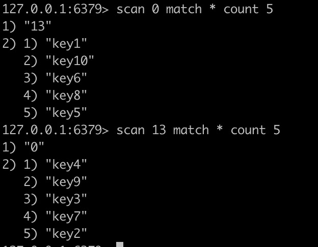 其实不难发现scan命令跟我们在数据库中按条件分页查询是有别的,mysql是根据条件查询出数据,scan命令是按字典槽数依次遍历,从结果中再匹配出符合条件的数据返回给客户端,那么很有可能在多次的迭代扫描时没有符合条件的数据。