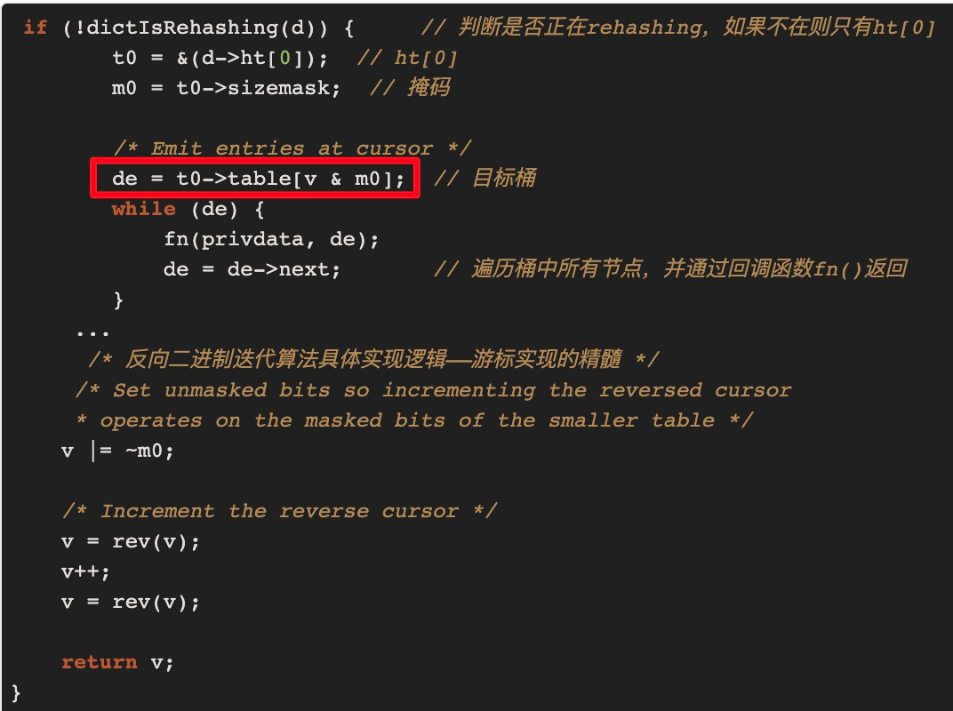 假设字典tablesize从16缩小到8,同样已经访问过3号桶,这时8~11号桶的元素被rehash到0号桶,若按顺序访问,则遍历会停止在7号桶,则这些数据就遗漏掉了。