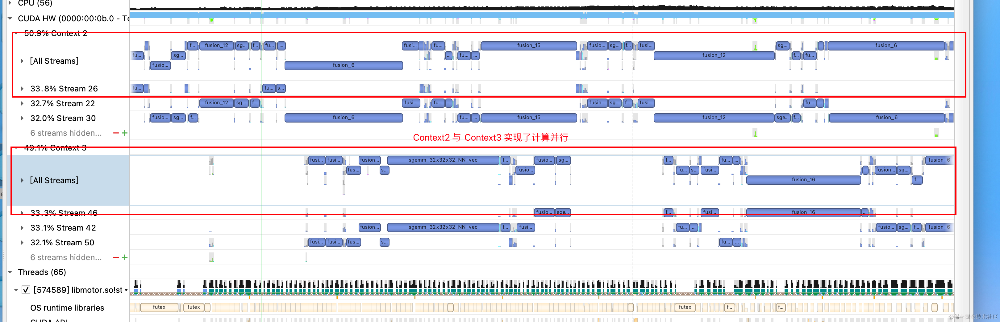 综上,我们实现了完整的GPU多流计算框架:创建多组通信渠道打通软件和硬件通道,融合调度Context实现真正的计算并行化。