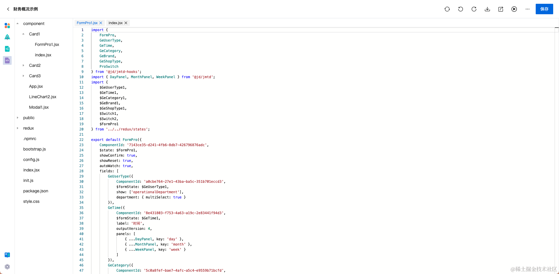 2.低代码编排: 设计并实现了编排技术方案,包括状态管理机制、可视化编排系统、数据集编排系统、代码生成与注入系统,可将万行代码的看板完全配置化实现。