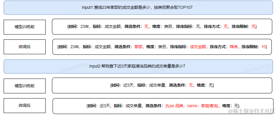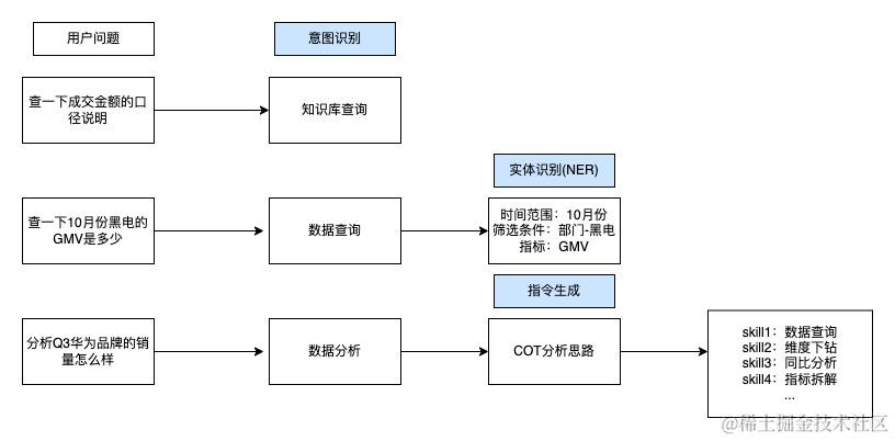 •目标确认:针对用户对数据的诉求,整理用户问题确定输入数据,基于不同任务目标确认不同输出格式,如实体识别输出标准格式的{实体类别:实体名称},指令生成输出标准格式的{分析能力:分析指令}等。