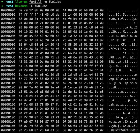 两种中间代码可以互相转换,我们将前面生成的.ll转换为.bc。