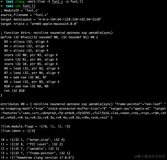 下面实操使用LLVM工具生成这.bc和.ll这两种中间代码: