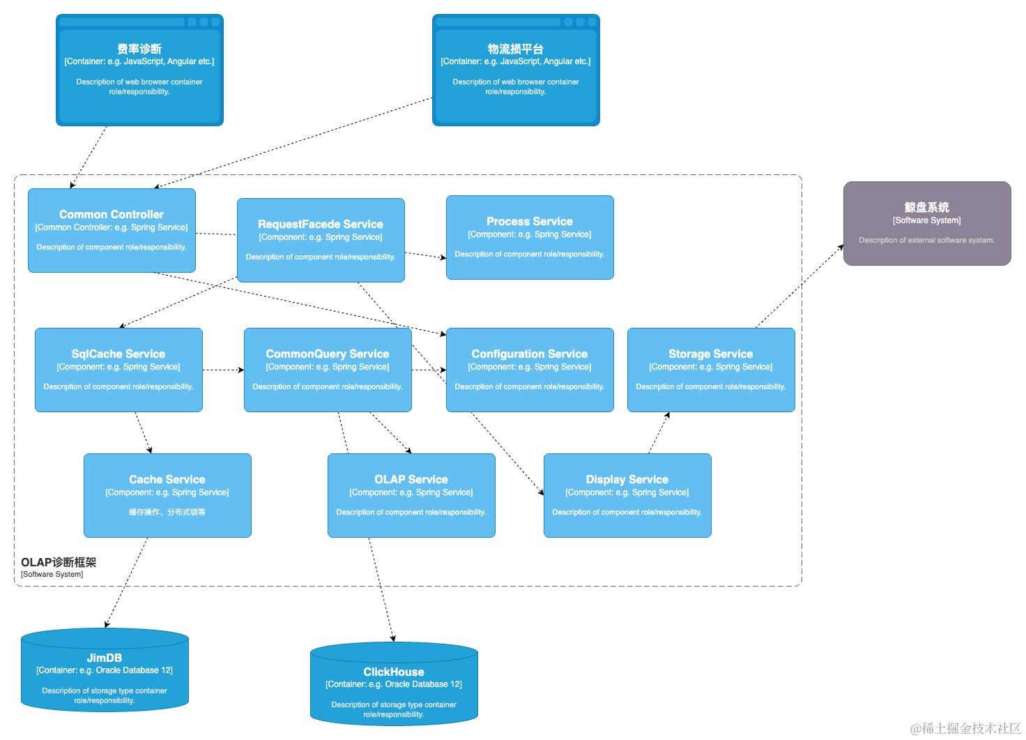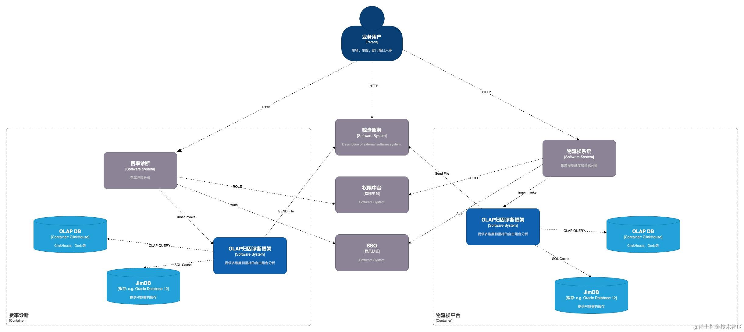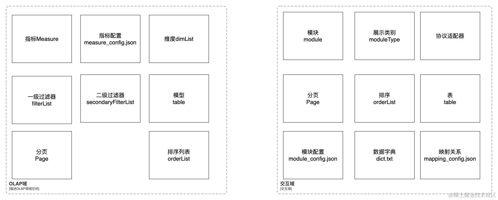 经过上面的抽象,框架方面,可以划分为核心OLAP域以及面向前端及配置的交互域,并提取出领域模型: