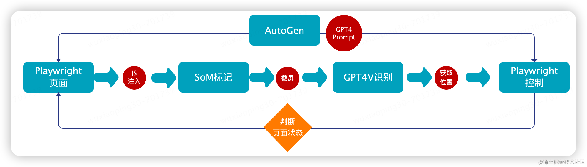 新的方案主要结合 Playwright,SoM视觉标记,GPT4Vison,GPT4,AutoGen来实现。主要的原理