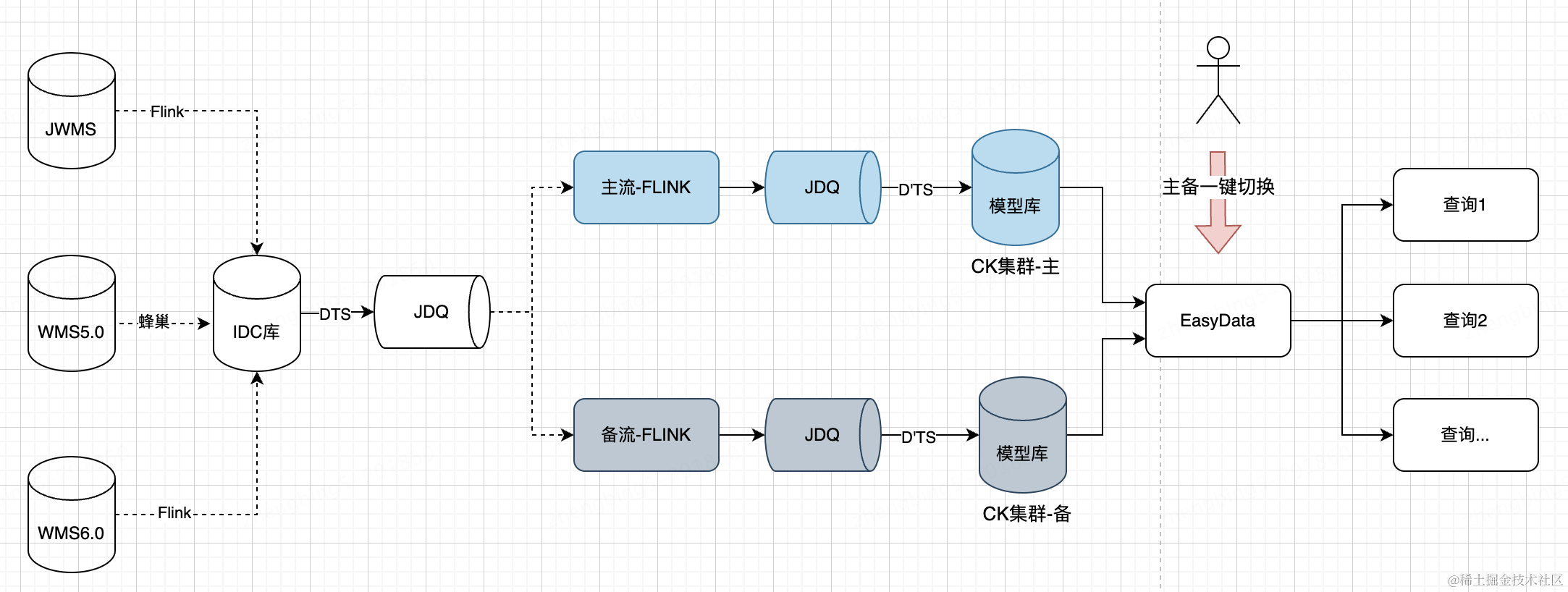 基于目前较为成熟的实时计算Flink,结合ClickHouse搭建基础模型,借助双流和EasyData实现一键切换。