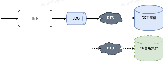 若数据需要做主备存储,我们只需要创建新的DTS任务订阅JDQ消息,将消息写入到备用的ClickHouse集群即可。