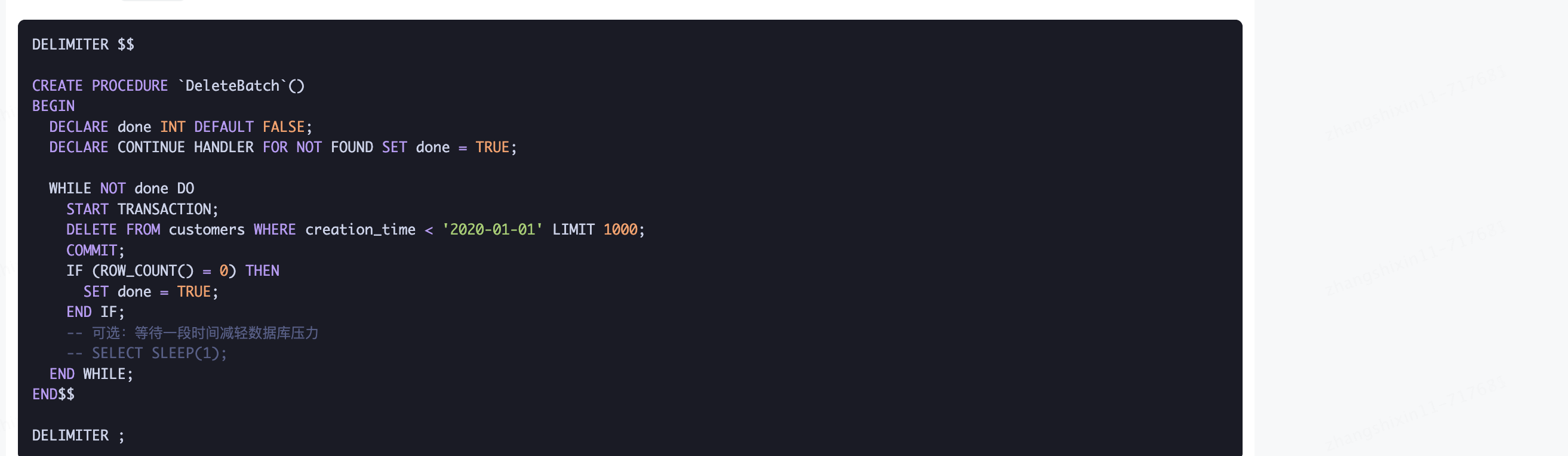 表结构: 这个表包含了客户的基本信息,包括 ID、名字、邮箱、电话、地址、城市、省、邮政编码等。还有两个时间戳字段,用于记录该记录的创建时间和最后更新时间 出现问题: 要删除其中的10万条记录