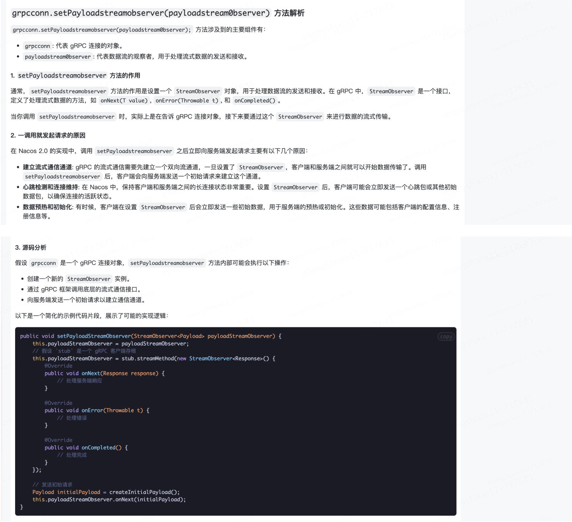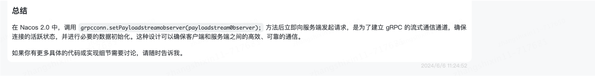 问题描述:在 nacos 的源码中为什么这个 set 方法一调用就往服务端发一个请求grpcconn.setPayloadstreamobserver(payloadstream0bserver);