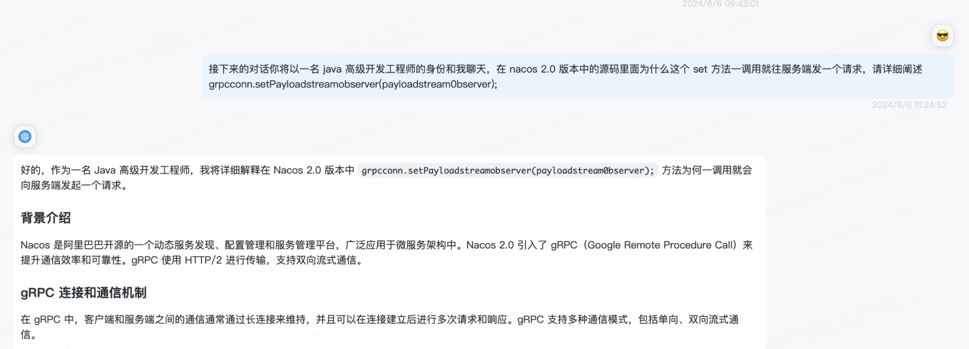 2.提出问题:在阅读源码时,有针对性地提出问题,例如:询问某个类或方法的作用、某个设计模式在代码中的应用等。通过与 GPT 的互动了解代码的功能和结构;