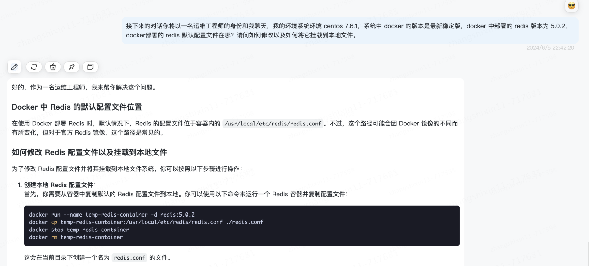 接下来的对话你将以一名运维工程师的身份和我聊天,我的环境系统环境 centos 7.6.1,系统中 docker 的版本是最新稳定版,docker 中部署的 redis 版本为 5.0.2,docker部署的 redis 默认配置文件在哪?请问如何修改以及如何将它挂载到本地文件。