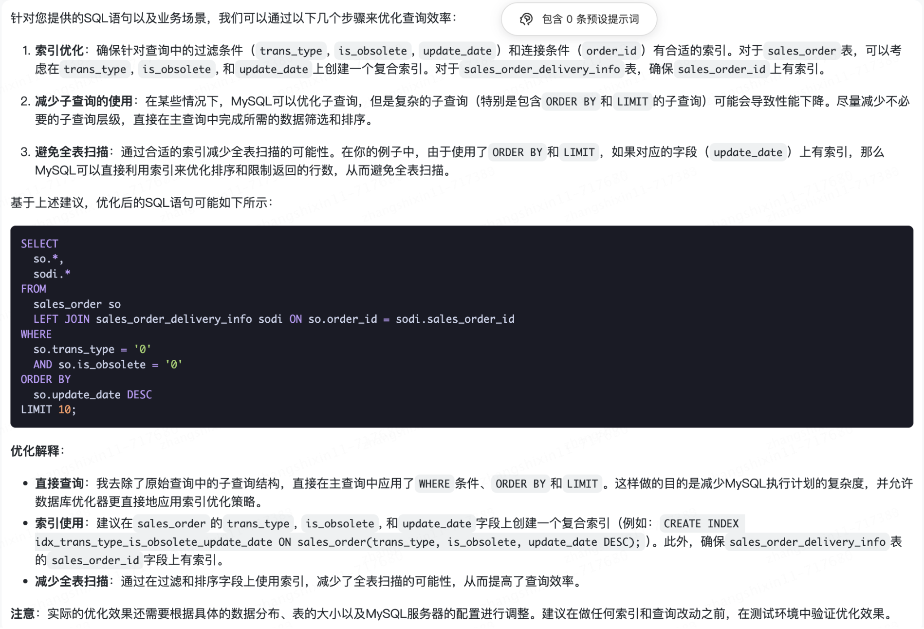 常规思路: 优化全表扫描查询只查询相关字段优化子查询